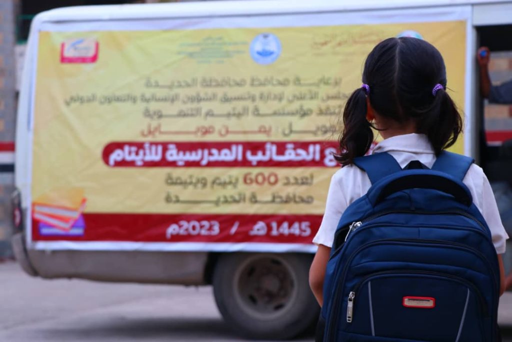 مؤسسة اليتيم التنموية تدشن توزيع ألف حقيبة مدرسية للأيتام في الحديدة